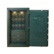 The ultimate in security for your watches, jewelry & valuables. Bespoke, the Athos 12 Piece Winder Safe is configured for 12 winders and 3 drawers. Forged in steel and wrapped in a dark green pebble bio-based material with gold accents, UL tested and certified for burglary, fire and Eurograde certified. Drawers are lined with LusterLoc™ treated ultrasuede that prevents tarnishing for 35 years. Watch winders are controlled by WOLF’s Bluetooth connected App. Control one or all winders at the same time.