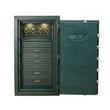 The ultimate in security for your watches, jewelry and valuables. Bespoke, the Athos 4 Piece Winder safe is configured for 4 winders and 7 drawers. Forged in steel and wrapped in a dark green pebble bio-based material with gold accents, UL tested and certified for burglary, fire and Eurograde certified. Drawers are lined with LusterLoc™ treated ultrasuede that prevents tarnishing for 35 years. Watch winders are controlled by WOLF’s Bluetooth connected App. Control one or all winders at the same time.