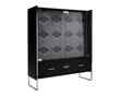 The 12 Piece Watch Winder Cabinet will keep 12 watches perfectly wound and protected, while the drawer accommodates additional watch storage for 4 watches, and a removable Triple Watch Roll for 3 watches with hidden capsule for those most precious things.