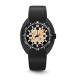 The DOXA Army occupies a special place in the brand’s history not only because of its connection with the Swiss Army. It was also one of the very first watches to use a coating process for cases that was relatively new to the watchmaking industry: the stainless-steel case was blackened by oxidation, giving it a matte black finish that prevented any glare, a key criterion for military equipment. This visual effect, quite original at the time, is maintained in today's reissue through the choice of matte black ceramic for the case.