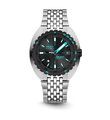 The SUB 300β sports watch combines functionality with style, maintaining foundational tool watch features in a redesigned 42.5 mm diameter case, now slimmer at 11.95 mm. The black ceramic bezel and screw-down crown enhance its sport-chic character, complemented by a sophisticated sunburst dial finish. Available with an FKM rubber strap or stainless-steel "Beads of Rice" bracelet, both featuring a ratcheting folding clasp, the watch is water-resistant up to 300 meters. With a scratch-resistant sapphire crystal, Swiss automatic movement, and a power reserve of around 38 hours, the SUB 300β is engineered for safety and exploration. True to DOXA's unconventional ethos, it blends the spirit of the times with an elegant, modern sport-chic look suitable for urban settings.