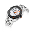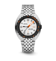 The SUB 300β sports watch combines functionality with style, maintaining foundational tool watch features in a redesigned 42.5 mm diameter case, now slimmer at 11.95 mm. The black ceramic bezel and screw-down crown enhance its sport-chic character, complemented by a sophisticated sunburst dial finish. Available with an FKM rubber strap or stainless-steel "Beads of Rice" bracelet, both featuring a ratcheting folding clasp, the watch is water-resistant up to 300 meters. With a scratch-resistant sapphire crystal, Swiss automatic movement, and a power reserve of around 38 hours, the SUB 300β is engineered for safety and exploration. True to DOXA's unconventional ethos, it blends the spirit of the times with an elegant, modern sport-chic look suitable for urban settings.