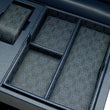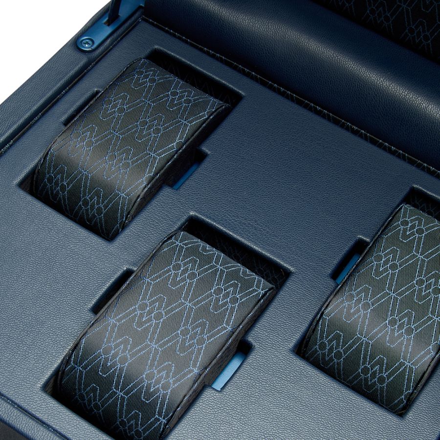 The Earth Triple Watch Winder, from the 190th anniversary collection, brings together innovative design, elegance and sustainability. Featuring an apple leather exterior with toning matt metallic hardware and bezels combined with a recycled jacquard silk interior with the WOLF signature pattern. The Dynamic Lock-in Cuff is customisable to three different wrist sizes and locks your watches inside the winder. Individually set the required Turns per Day and direction for your three watches via the WOLF Bluetooth app. In the top storage section find five suspended watch cushions and removable accessory tray with multiple sections for your valuables.