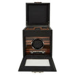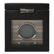 Aged wood dashboards, chrome spoked wheels, leather that is glove soft. Roadster - inspired by the best of British motorcars, Jaguar, Aston Martin, Bristol and the like. Turning your watch perfectly to a precise number of turns, the Roadster single with storage’s ebony macassar polished wood, chrome finished hardware and 3-piece watch storage makes the perfect backdrop for your watch.