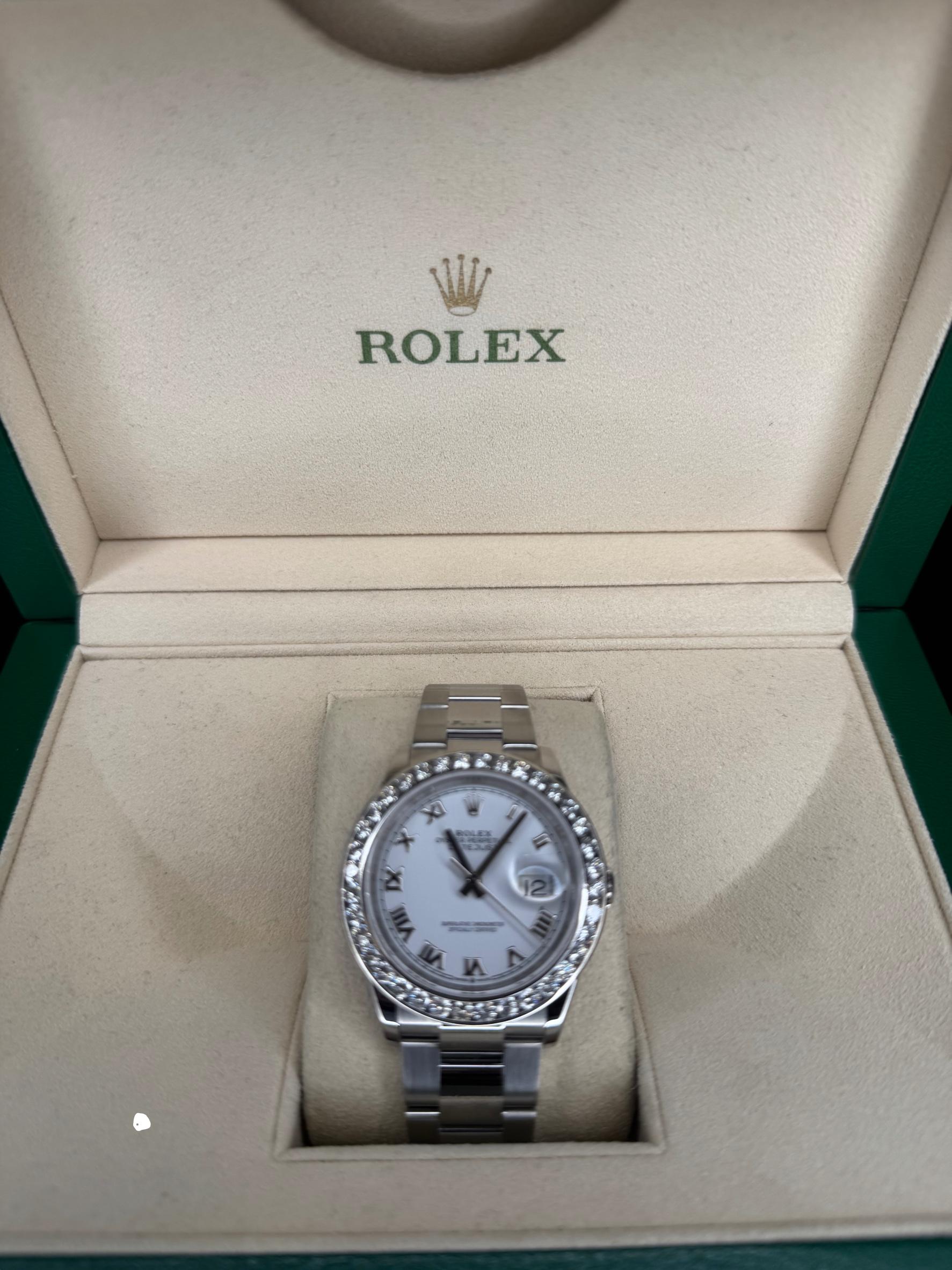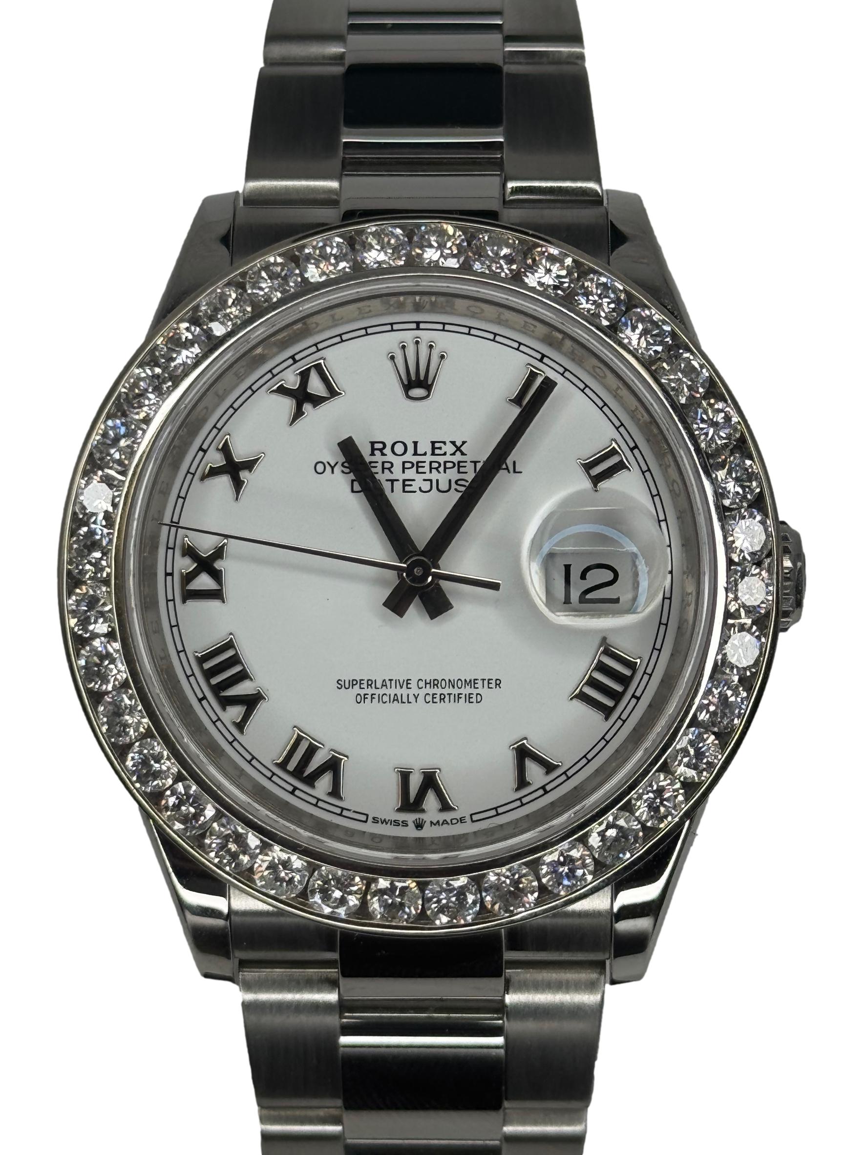 Rolex Datejust 126234 Oyster white dial 3.5ct custom diamond bezel 36mm B&P watch