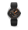 The SUB 300β sports watch combines functionality with style, maintaining foundational tool watch features in a redesigned 42.5 mm diameter case, now slimmer at 11.95 mm. The black ceramic bezel and screw-down crown enhance its sport-chic character, complemented by a sophisticated sunburst dial finish. Available with an FKM rubber strap or stainless-steel "Beads of Rice" bracelet, both featuring a ratcheting folding clasp, the watch is water-resistant up to 300 meters. With a scratch-resistant sapphire crystal, Swiss automatic movement, and a power reserve of around 38 hours, the SUB 300β is engineered for safety and exploration. True to DOXA's unconventional ethos, it blends the spirit of the times with an elegant, modern sport-chic look suitable for urban settings.