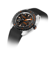 The SUB 300β sports watch combines functionality with style, maintaining foundational tool watch features in a redesigned 42.5 mm diameter case, now slimmer at 11.95 mm. The black ceramic bezel and screw-down crown enhance its sport-chic character, complemented by a sophisticated sunburst dial finish. Available with an FKM rubber strap or stainless-steel "Beads of Rice" bracelet, both featuring a ratcheting folding clasp, the watch is water-resistant up to 300 meters. With a scratch-resistant sapphire crystal, Swiss automatic movement, and a power reserve of around 38 hours, the SUB 300β is engineered for safety and exploration. True to DOXA's unconventional ethos, it blends the spirit of the times with an elegant, modern sport-chic look suitable for urban settings.