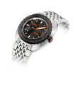 The SUB 300β sports watch combines functionality with style, maintaining foundational tool watch features in a redesigned 42.5 mm diameter case, now slimmer at 11.95 mm. The black ceramic bezel and screw-down crown enhance its sport-chic character, complemented by a sophisticated sunburst dial finish. Available with an FKM rubber strap or stainless-steel "Beads of Rice" bracelet, both featuring a ratcheting folding clasp, the watch is water-resistant up to 300 meters. With a scratch-resistant sapphire crystal, Swiss automatic movement, and a power reserve of around 38 hours, the SUB 300β is engineered for safety and exploration. True to DOXA's unconventional ethos, it blends the spirit of the times with an elegant, modern sport-chic look suitable for urban settings.